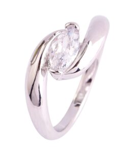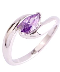 925 Sterling Silver Created Amethyst Filled Marquise Cut Bypass Band Wedding Ring