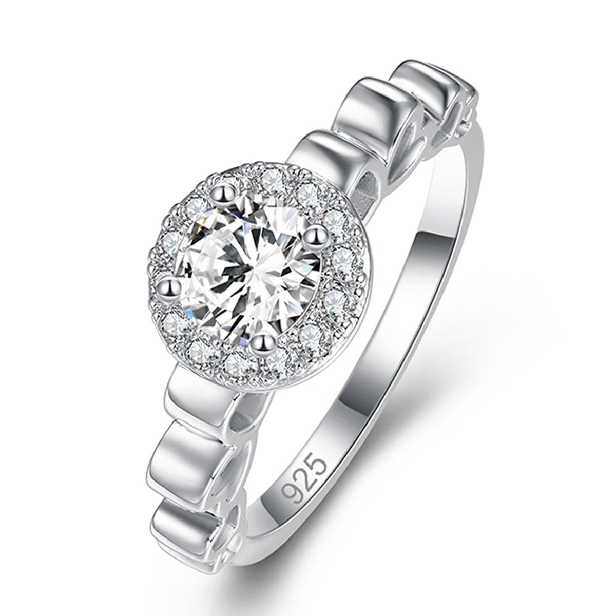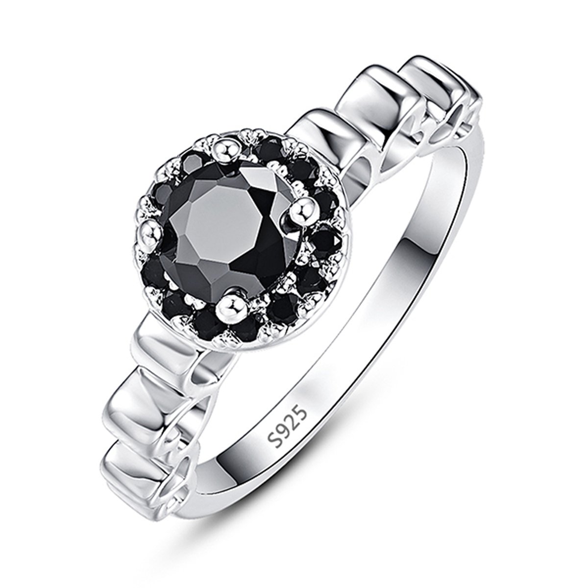 925 Sterling Silver Created Black Spinel Filled Round Cut Open Heart Band Halo Engagement Ring for Women