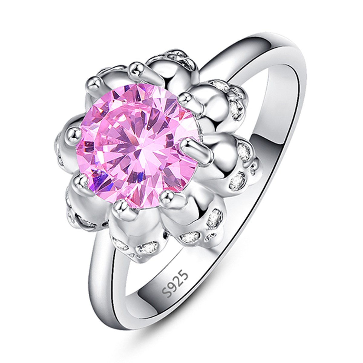 925 Sterling Silver Created Garnet Filled Round Cut Skull Flower Promise Ring for Women