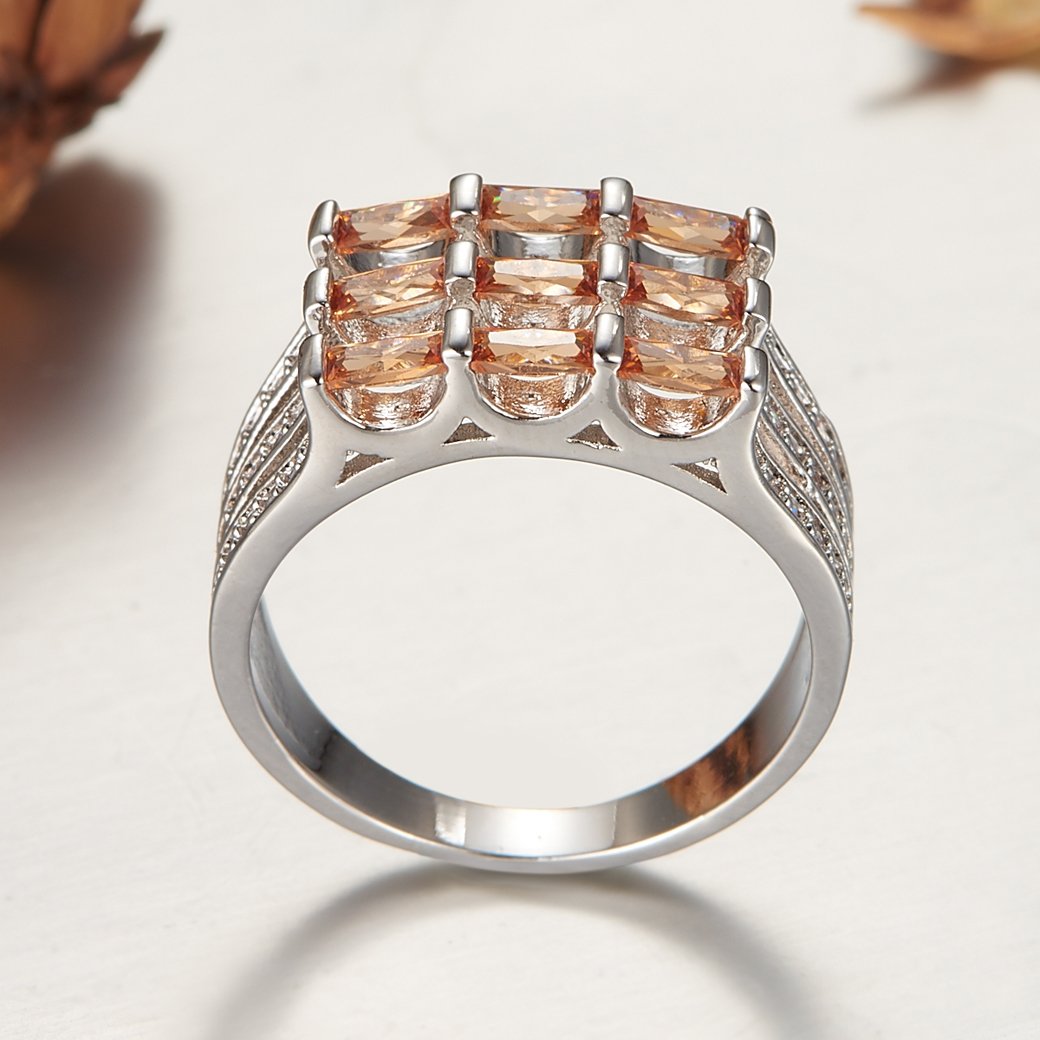 925 Sterling Silver Created Morganite Filled Knuckle Ring Band