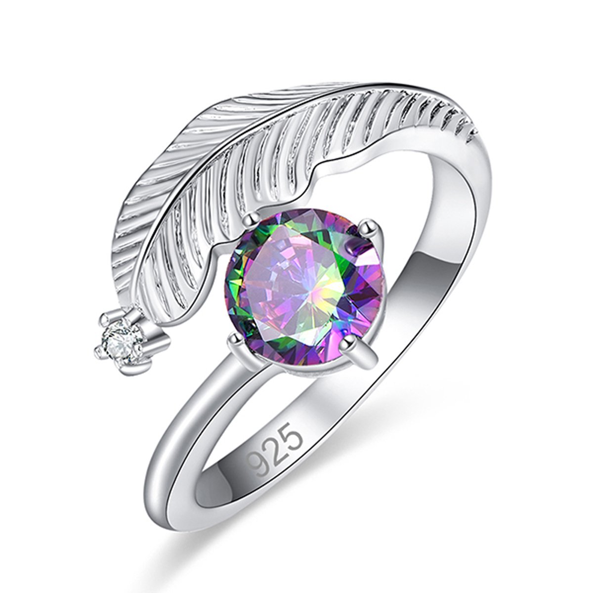 925 Sterling Silver Created Rainbow Topaz Filled Bypass Band Feather Ring