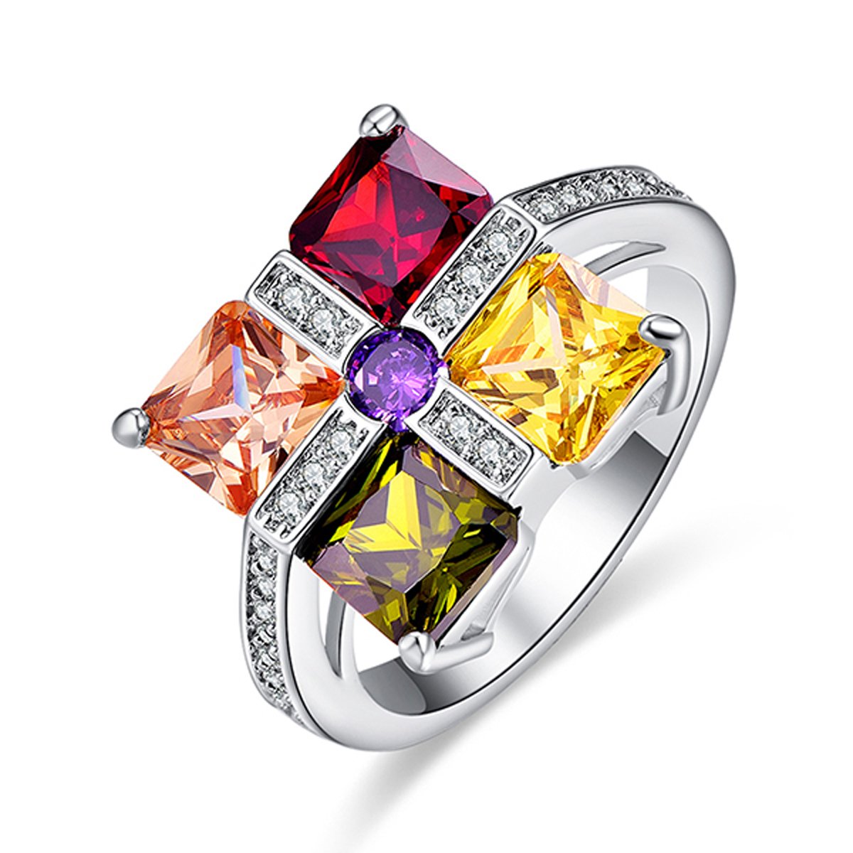 925 Sterling Silver Created Rainbow Topaz Filled Ring for Women
