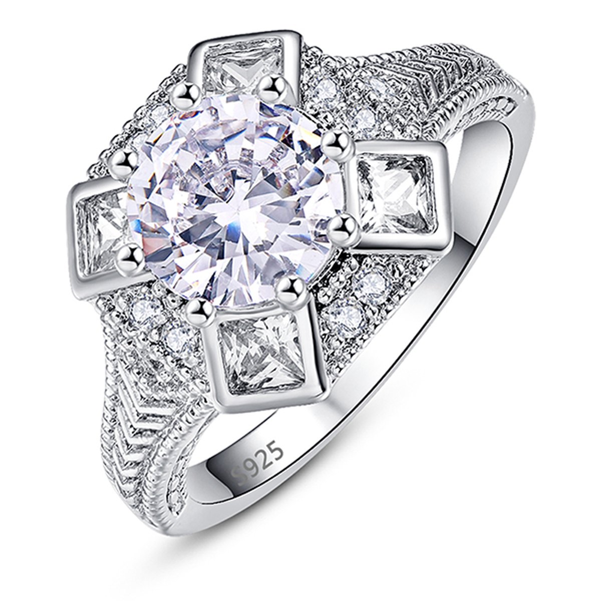 925 Sterling Silver Created Rainbow Topaz Filled Round Cut Unique Statement Promise Ring for Women