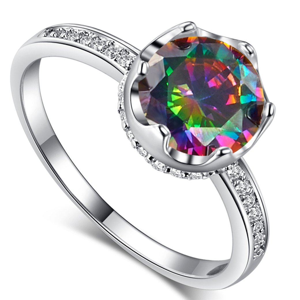925 Sterling Silver Created Rainbow Topaz Filled Solitaire Promise Ring