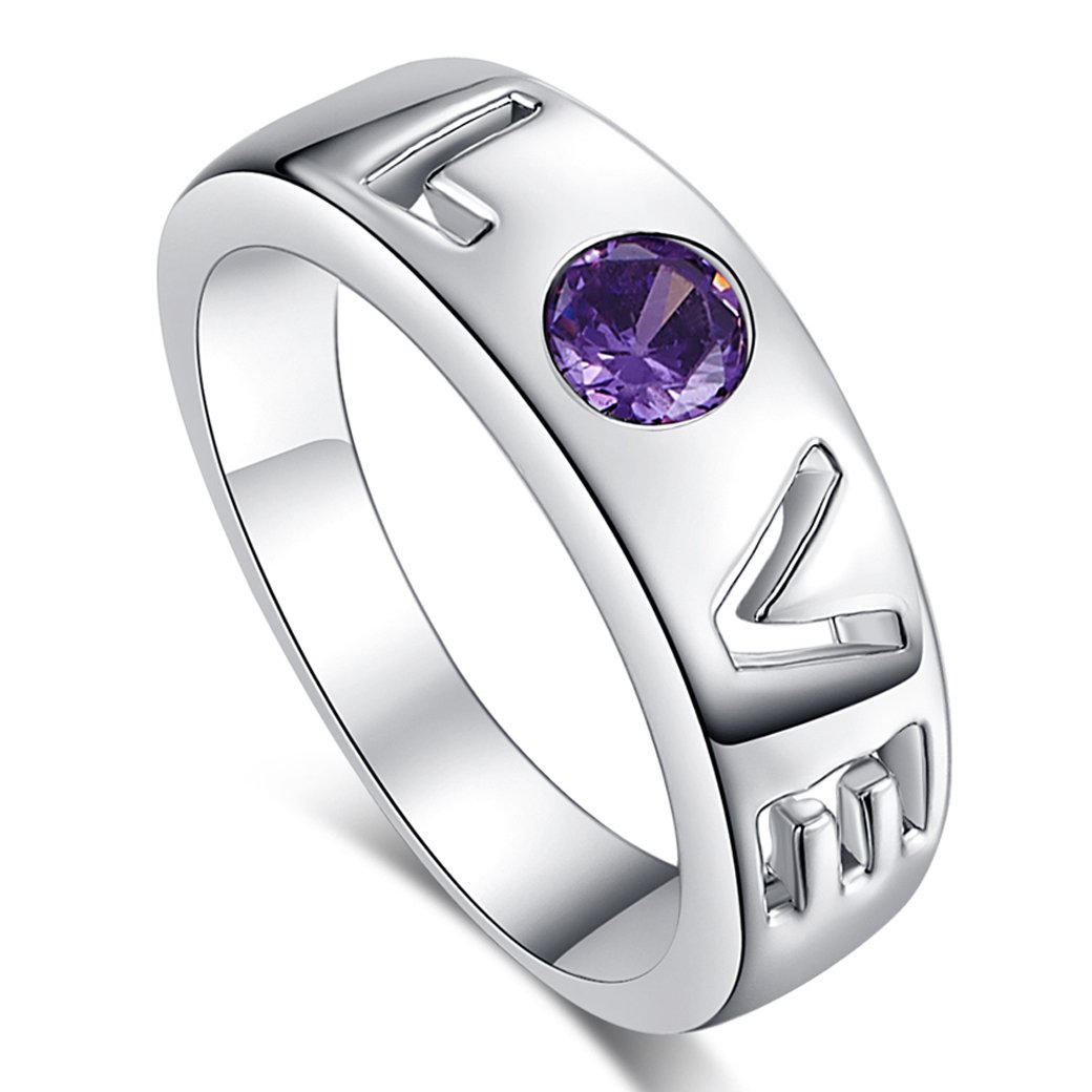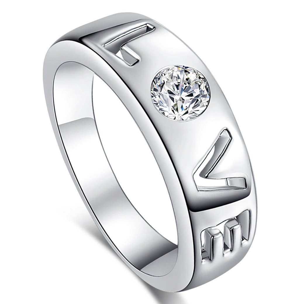925 Sterling Silver Created White Topaz Filled LOVE Wedding Ring Band