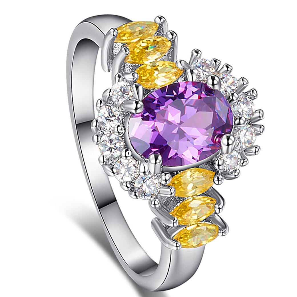 925 Sterling Silver Oval Cut Created Amethyst Filled Promise Ring