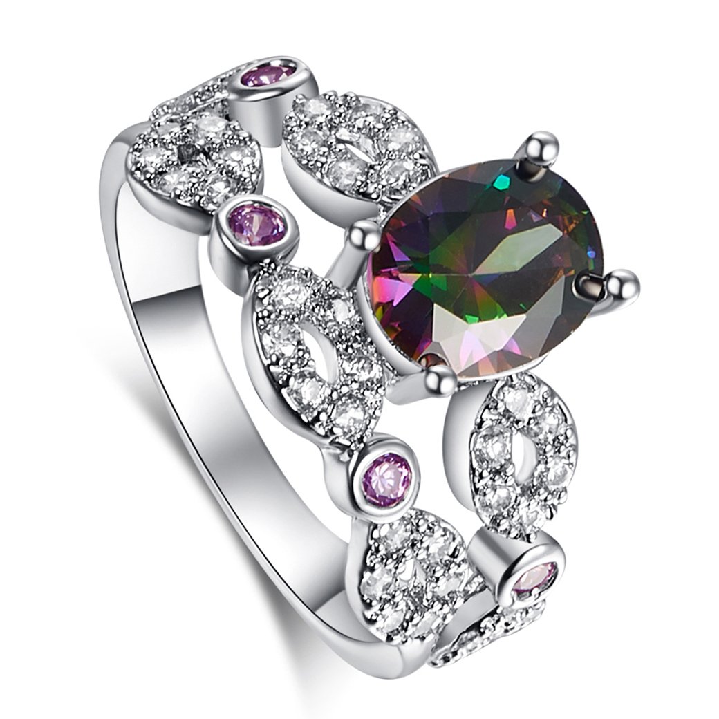 925 Sterling Silver Oval Cut Created Rainbow Topaz Filled Engagement Ring
