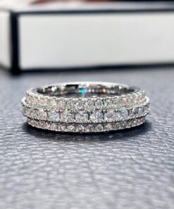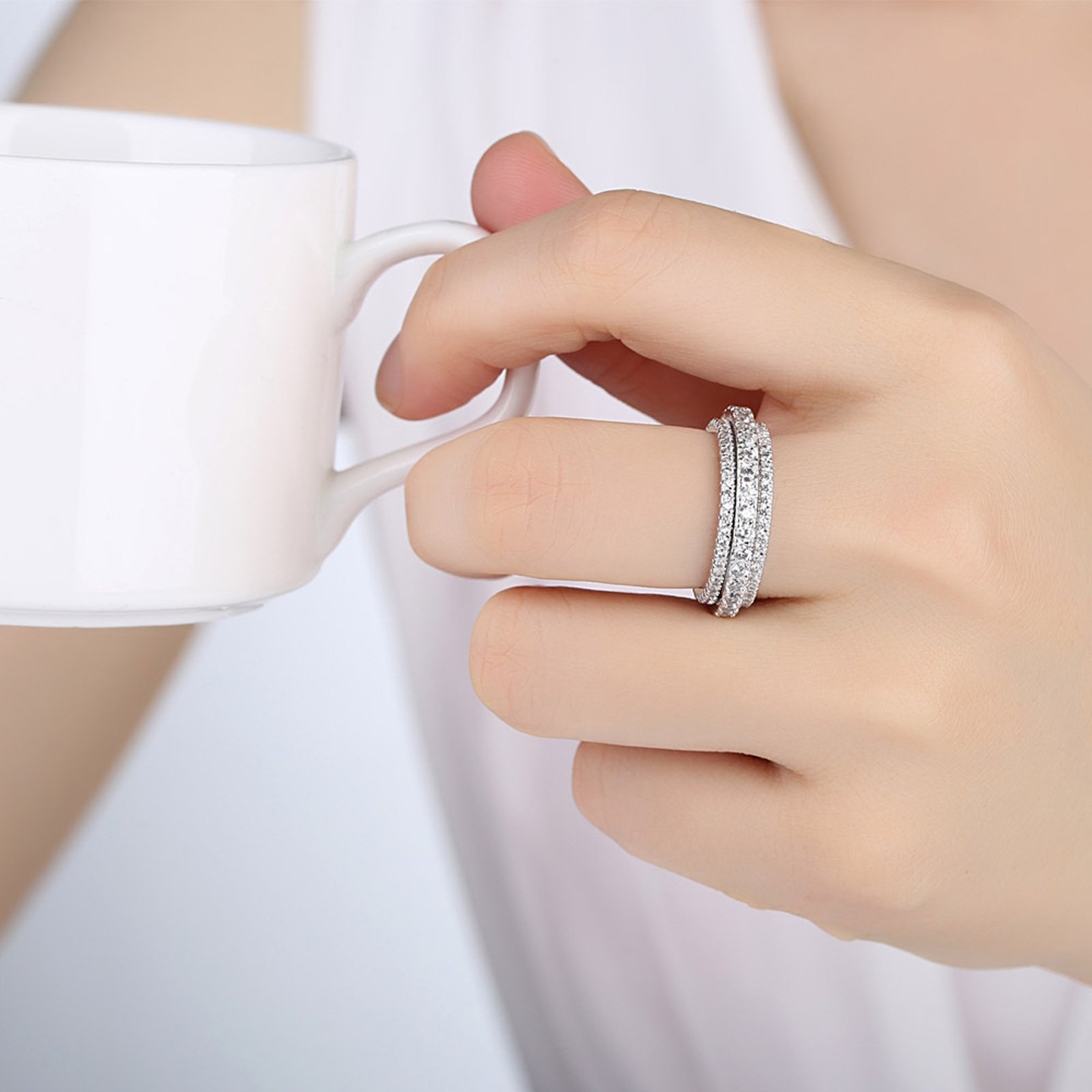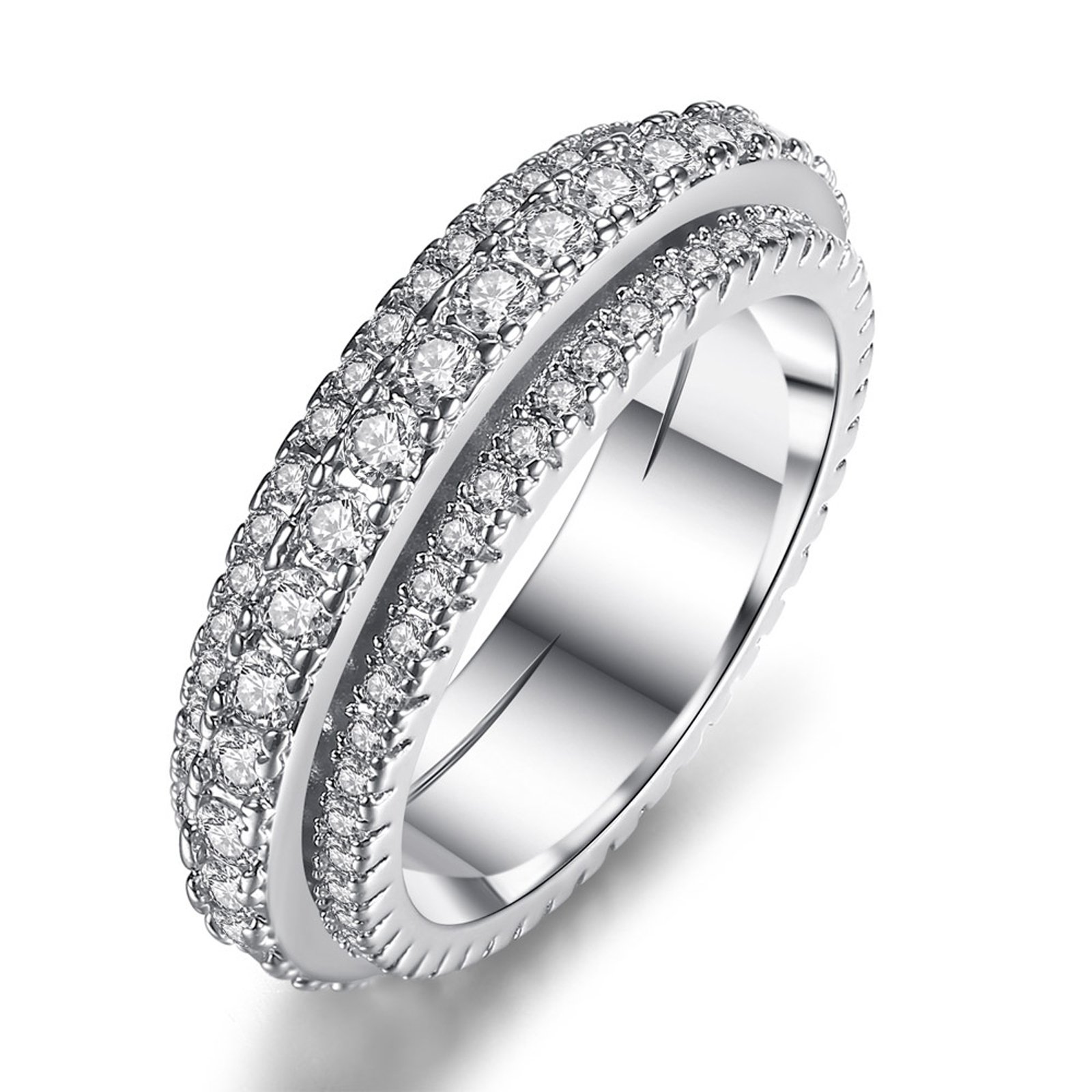 925 Sterling Silver Plated 3 Rows Cubic Zirconia Wedding Band CZ Engagement Stackable Ring for Women