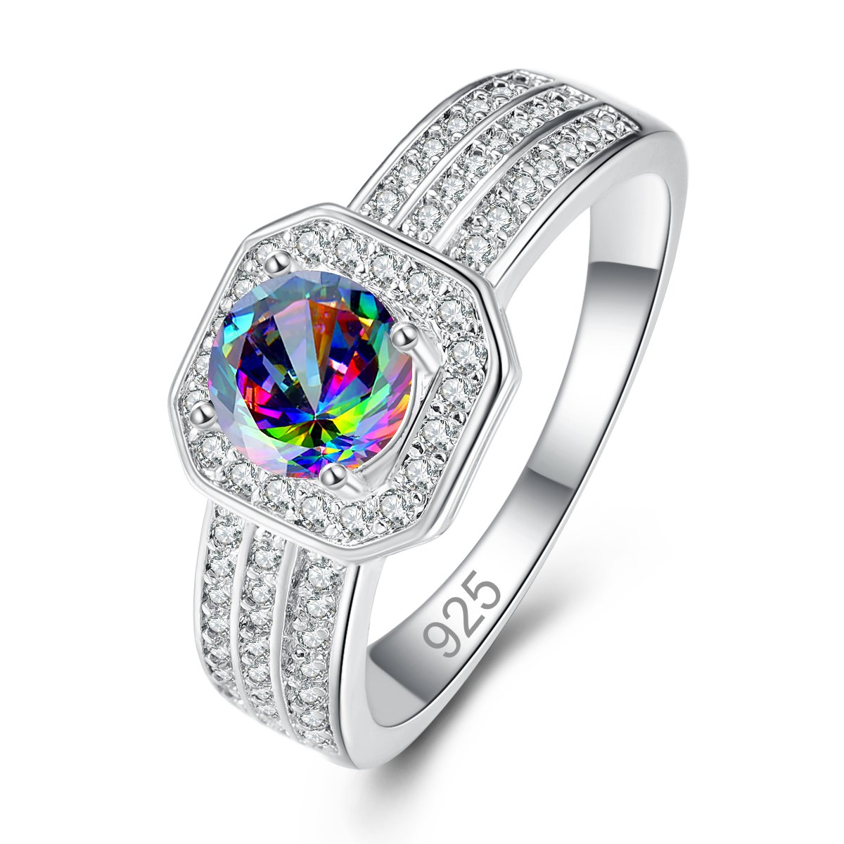 925 Sterling Silver Plated Created Blue Sapphire Quatrz Filled Engagement Halo Ring for Women