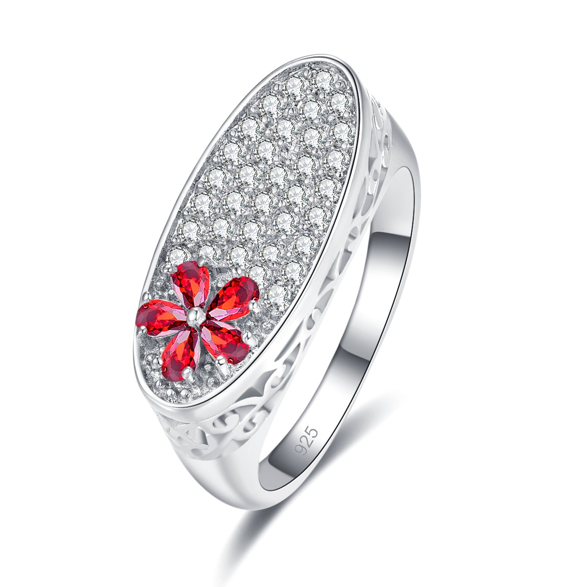 925 Sterling Silver Plated Created Garnet Filled Knuckle Band Ring for Women