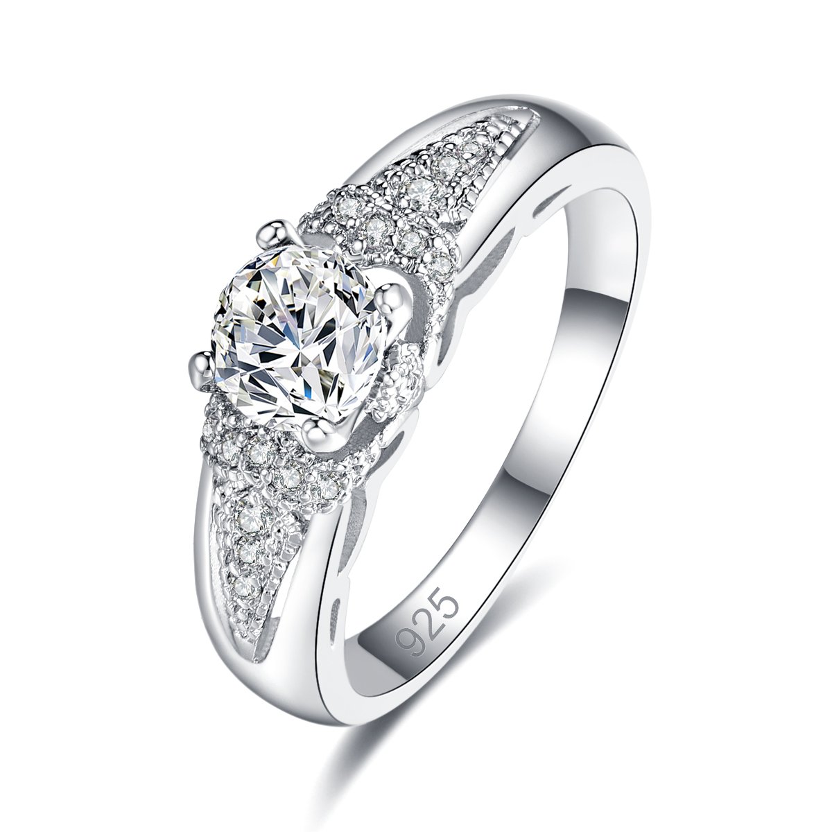 925 Sterling Silver Plated Created Rainbow Topaz Filled Solitaire Promise Ring for Women