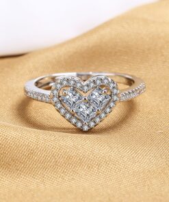925 Sterling Silver Plated Cubic Zirconia Heart Shape Wedding Band Ring CZ Halo Engagement Ring for Women