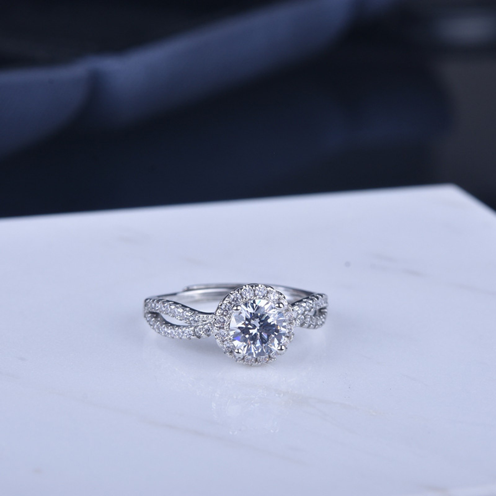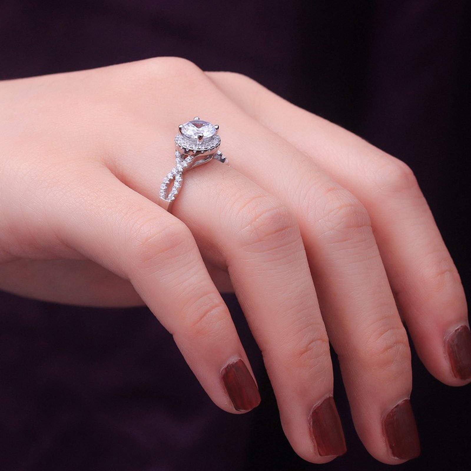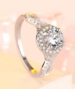 925 Sterling Silver Plated Round Cubic Zirconia Infinity Wedding Band Ring CZ Halo Engagement Ring for Women