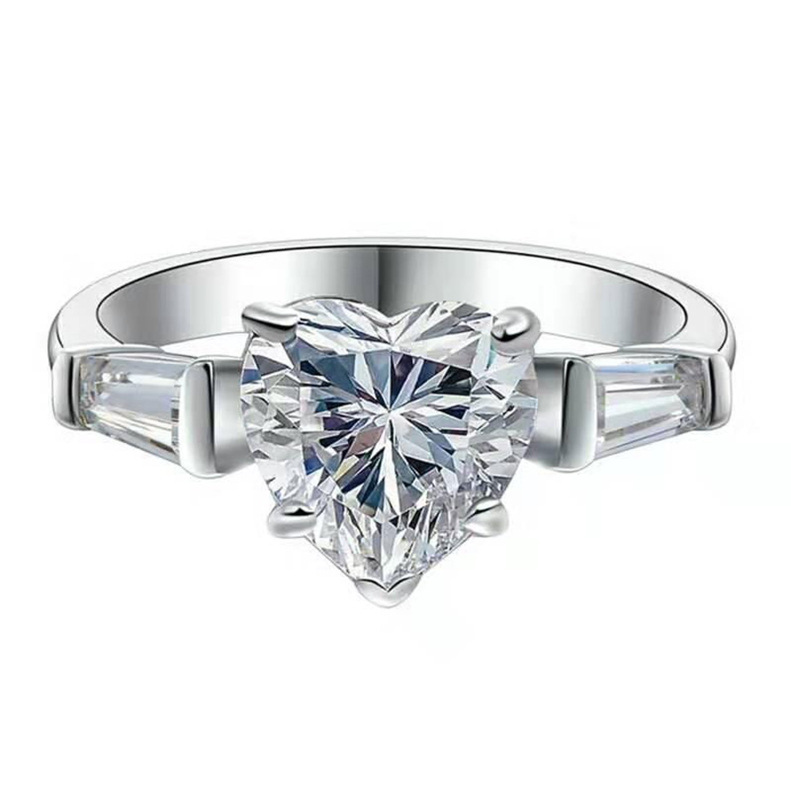 Classic 925 Sterling Silver Plated Cubic Zirconia CZ Heart Wedding Band Ring for Women