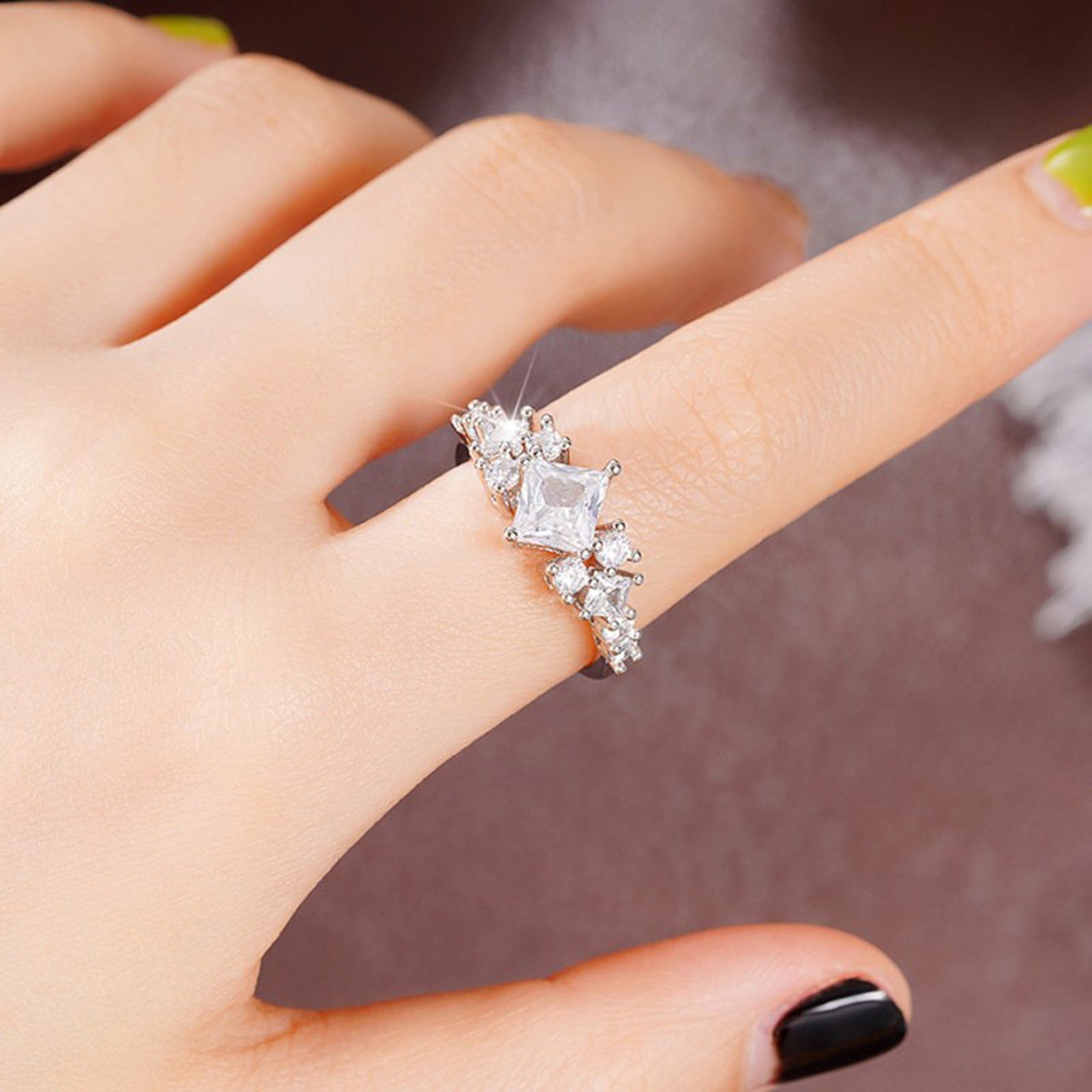 Psiroy Cubic Zirconia Wedding Band Ring, 925 Sterling Silver Plated Princess Cut CZ Engagement Promise Ring for Women Mother’s Day Jewelry Gifts