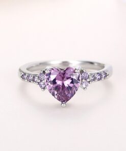 Psiroy Heart Rings for Women, 925 Sterling Silver Plated Simulated Amethyst Engagement Promise Ring Fashion Jewelry Gift Mother’s Day