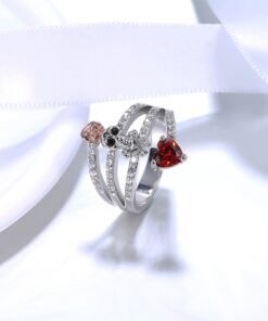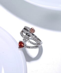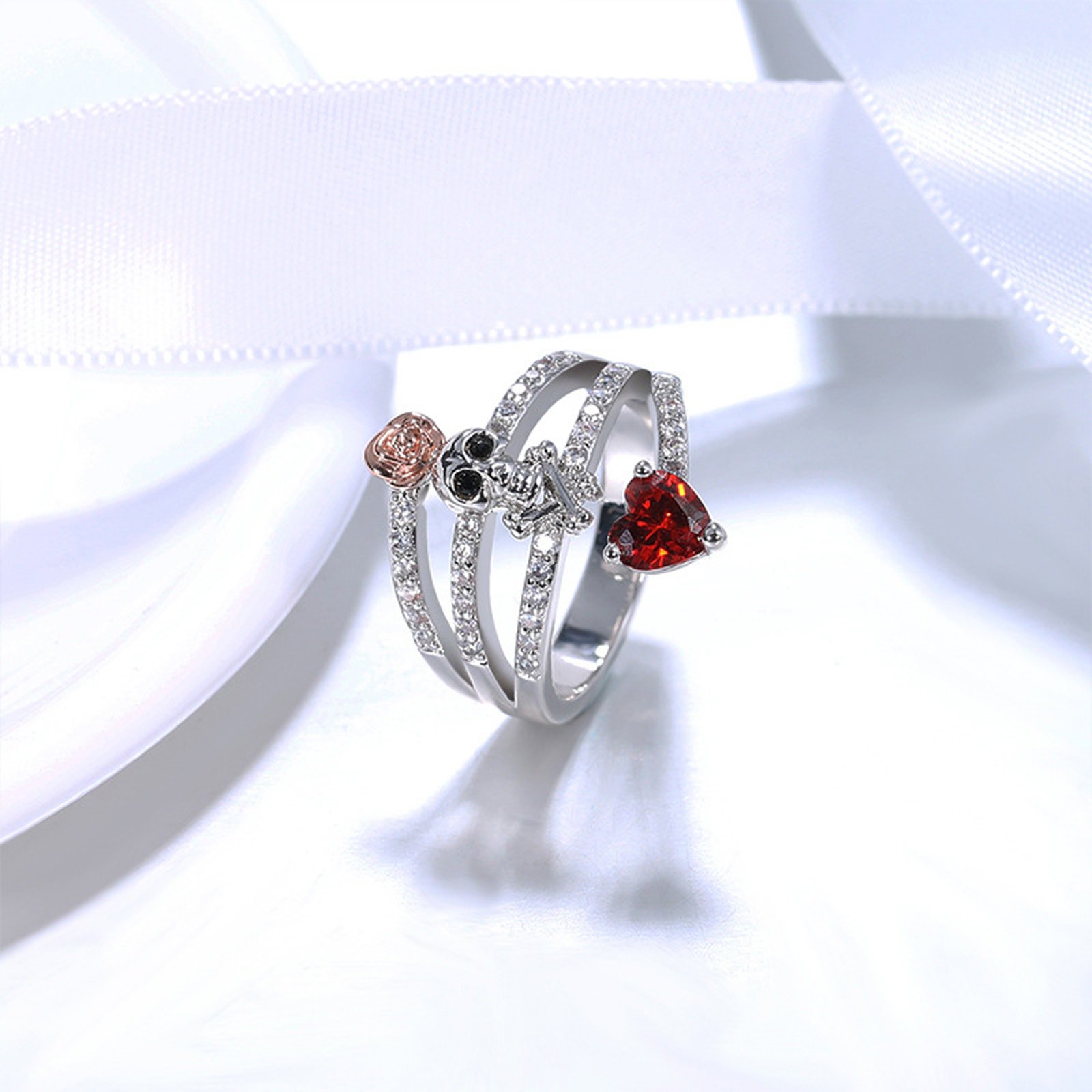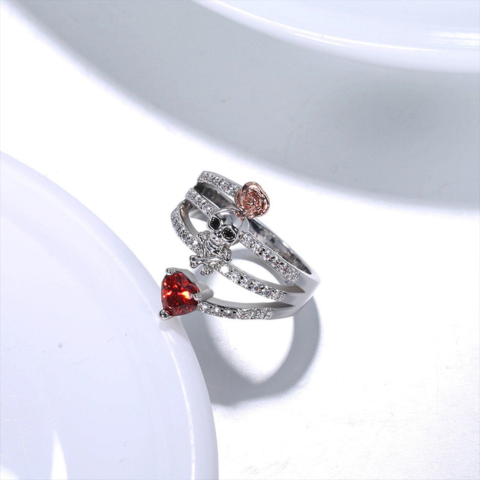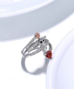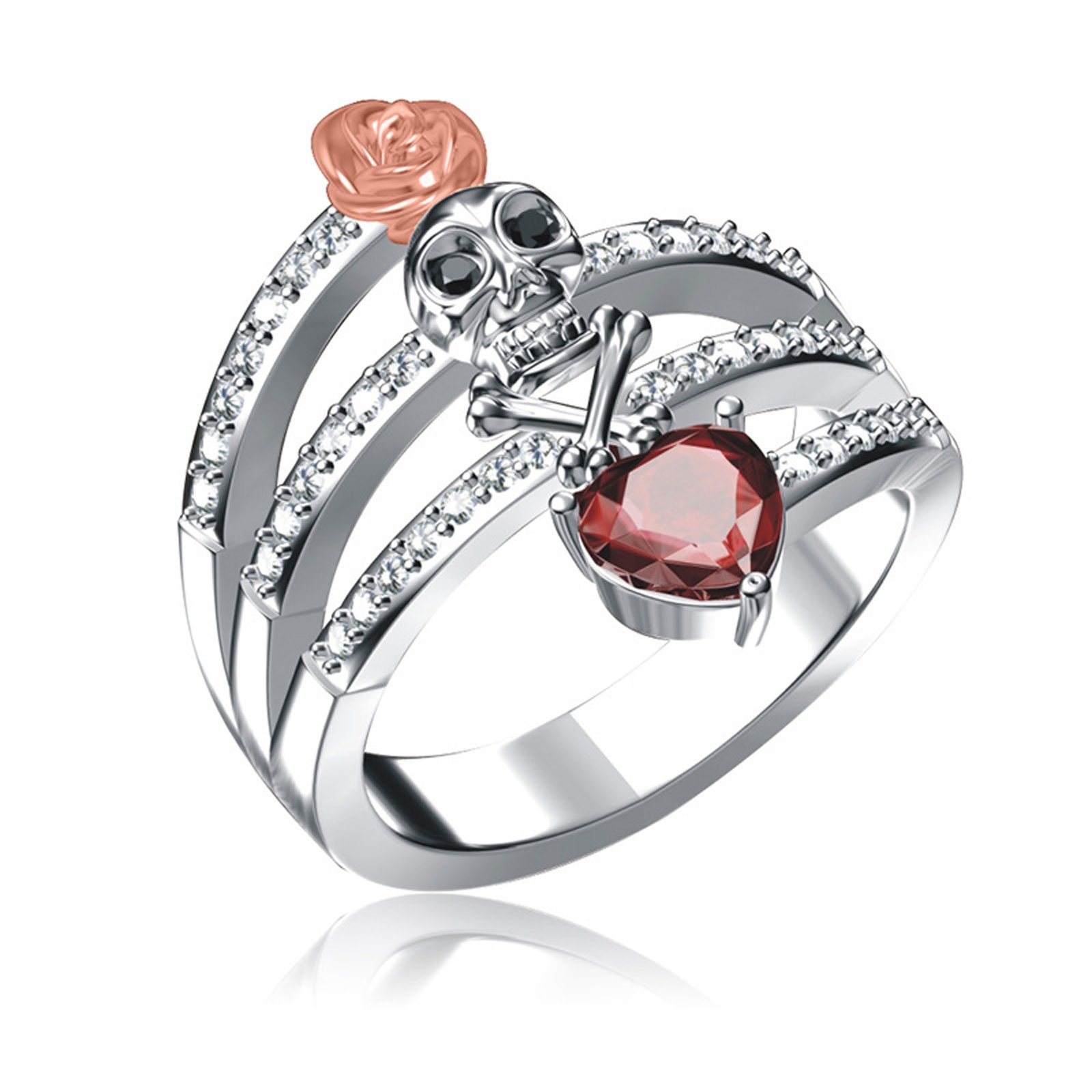 Psiroy Skull Rings for Women Flower Rings Simulated Garnet Statement Heart Ring 925 Sterling Silver Plated Jewelry Gift