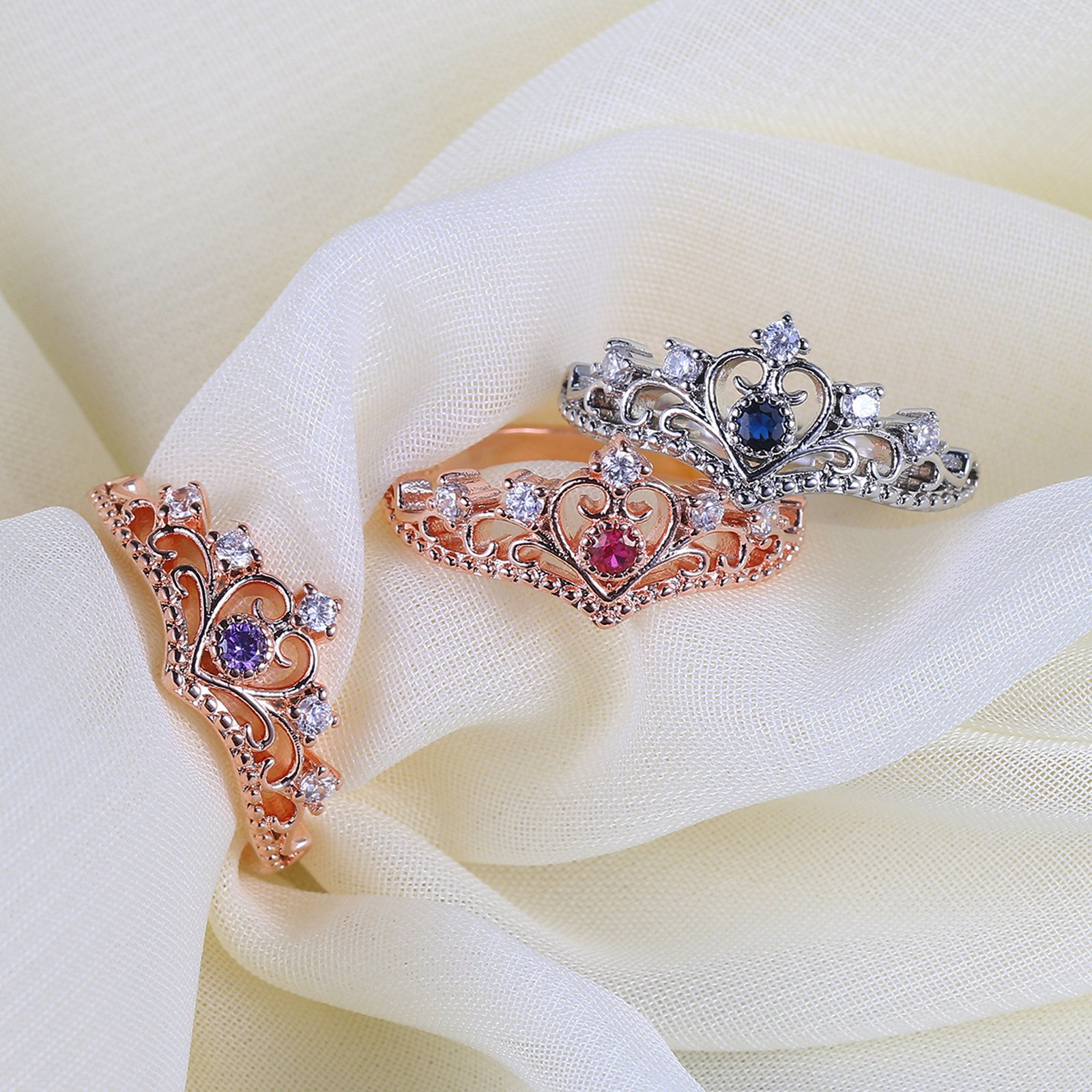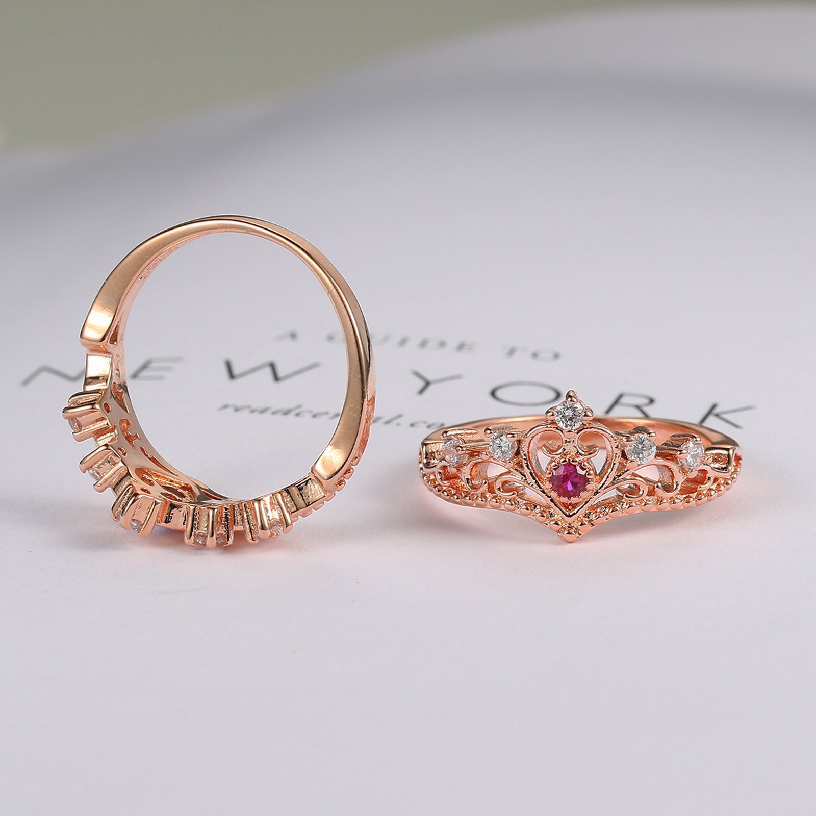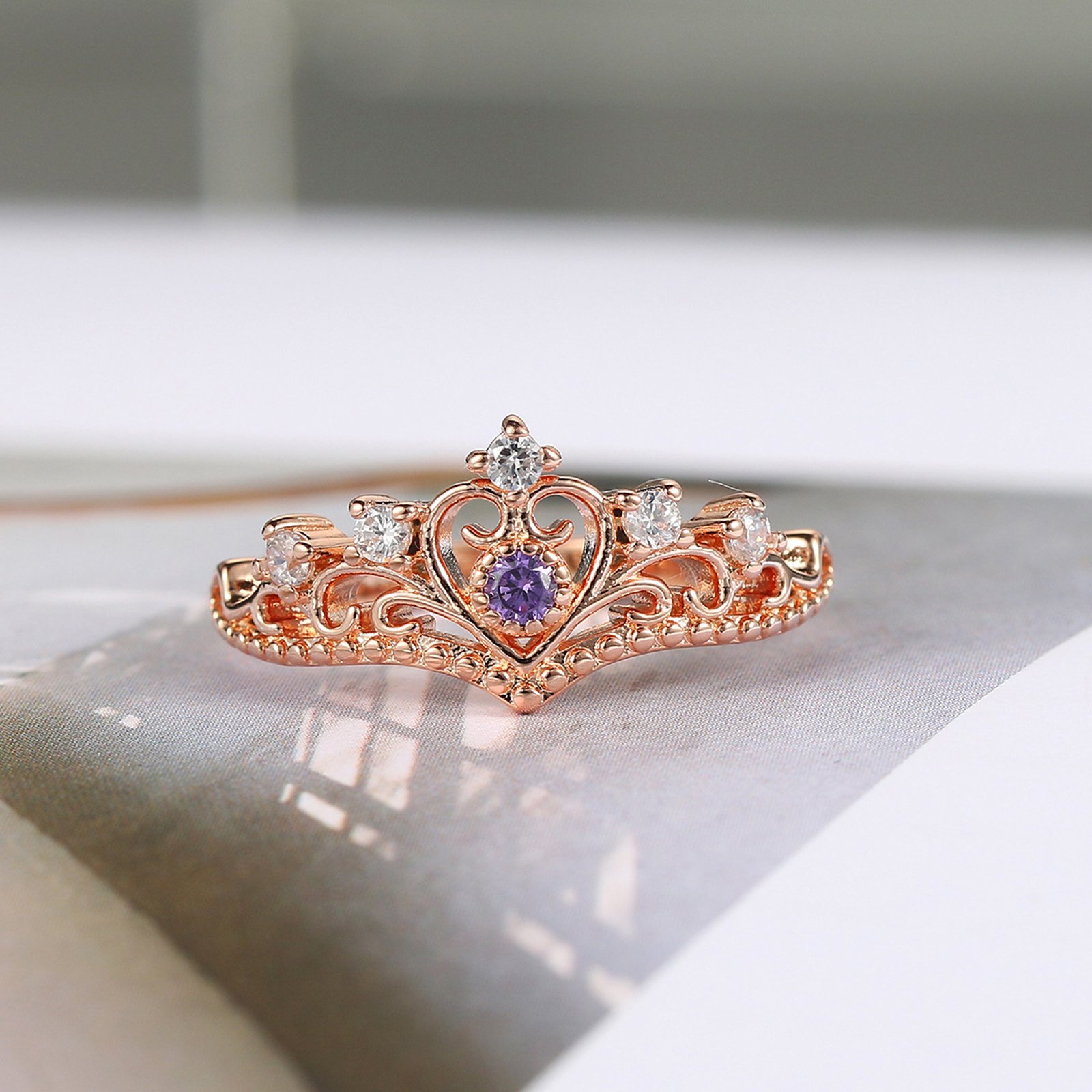Psiroy Tiara Crown Ring for Women Wedding Band Rose Gold Plated Simulated Amethyst Promise Ring for Teen Girls to 10