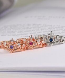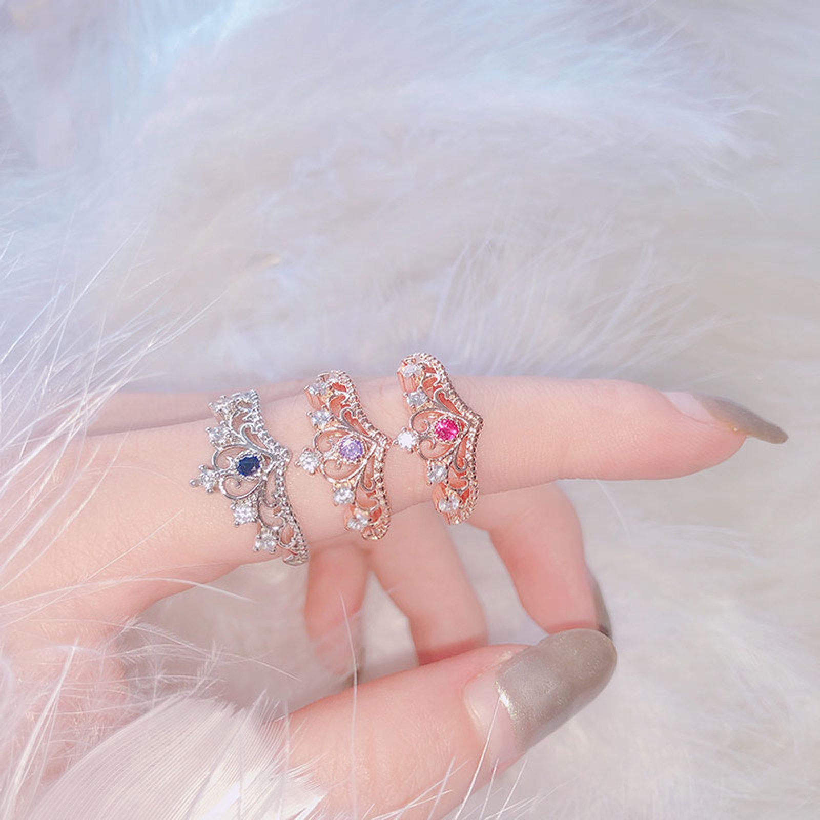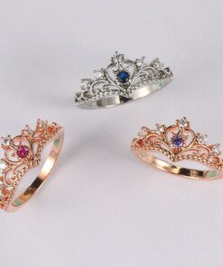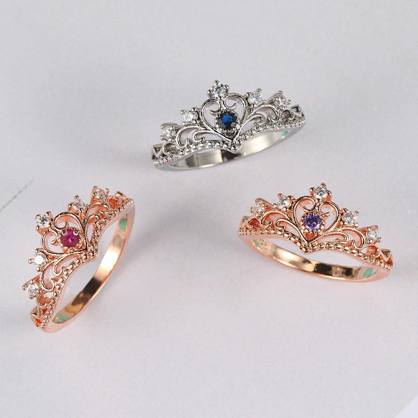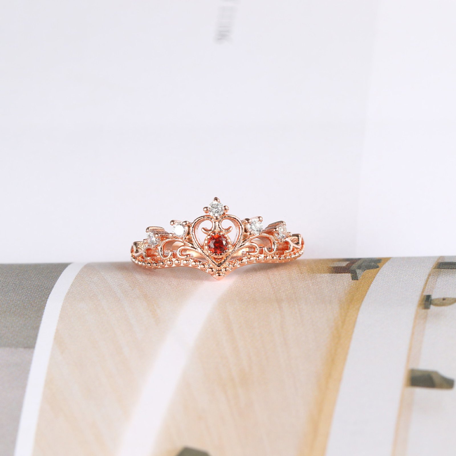 Psiroy Tiara Crown Ring for Women Wedding Band Rose Gold Plated Simulated Amethyst Promise Ring for Teen Girls to 10