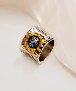 Psiroy Vintage Knuckle Rings for Women Chunky Punk Boho Finger Sunflower Wide Band Ring