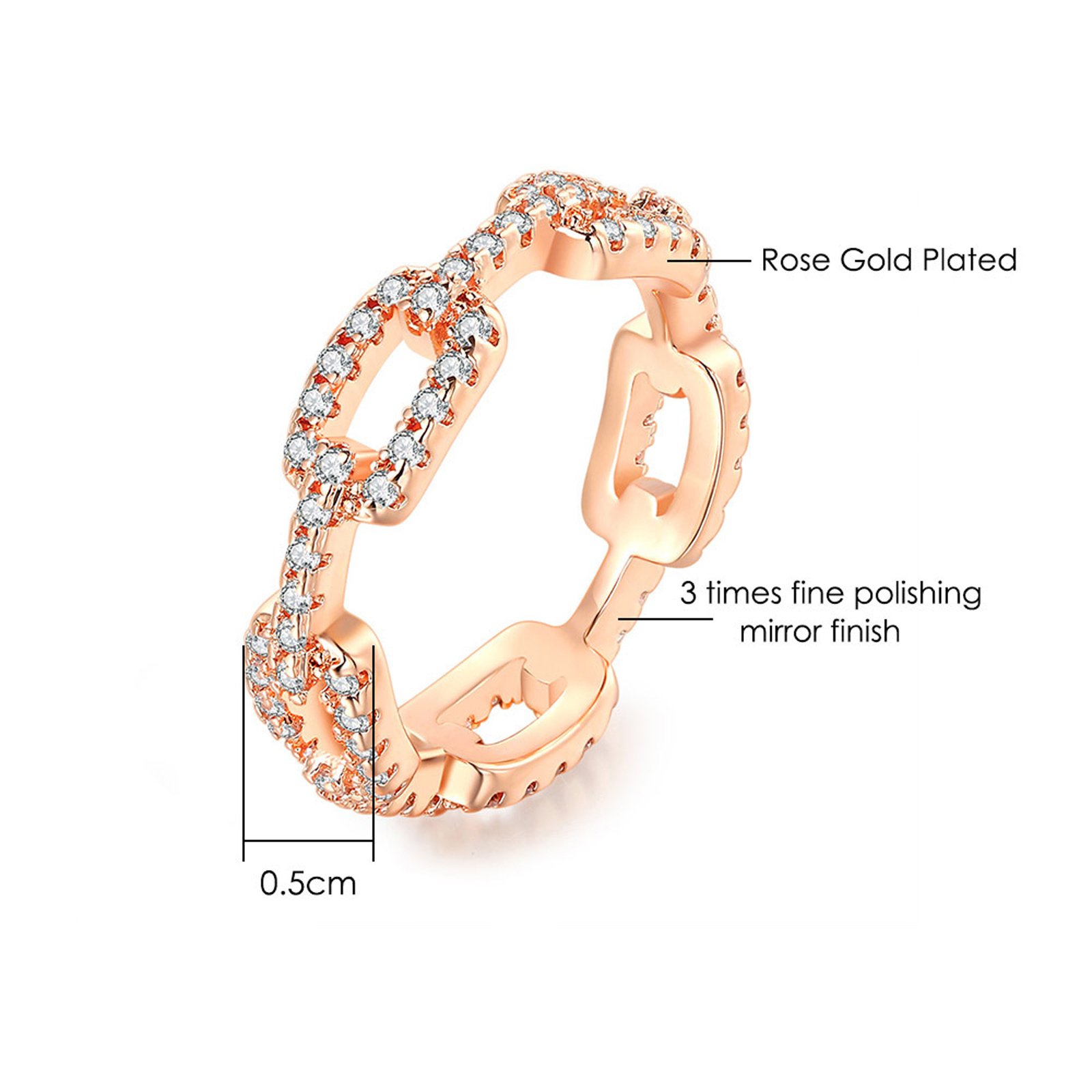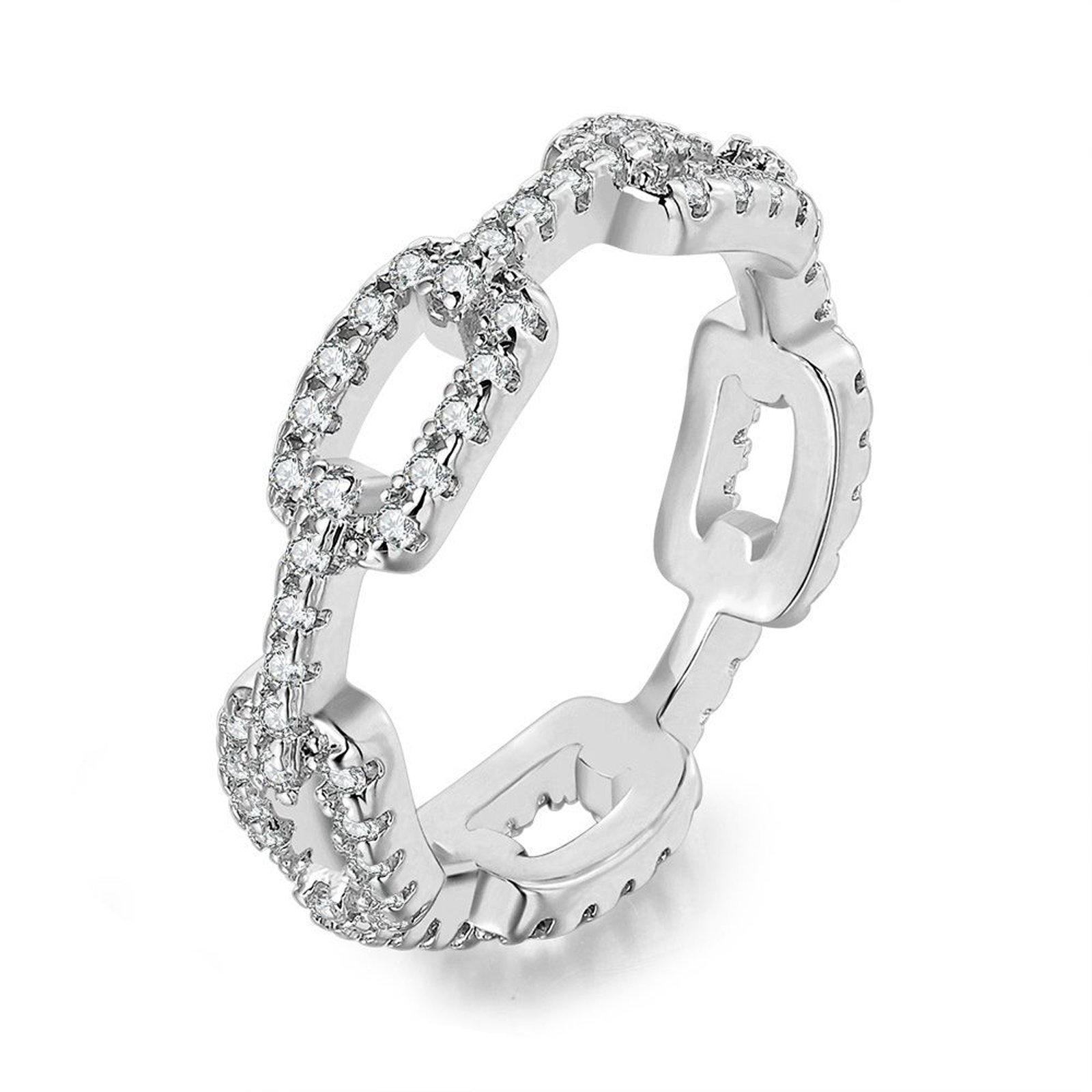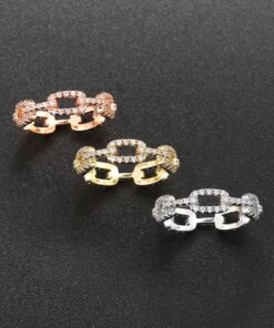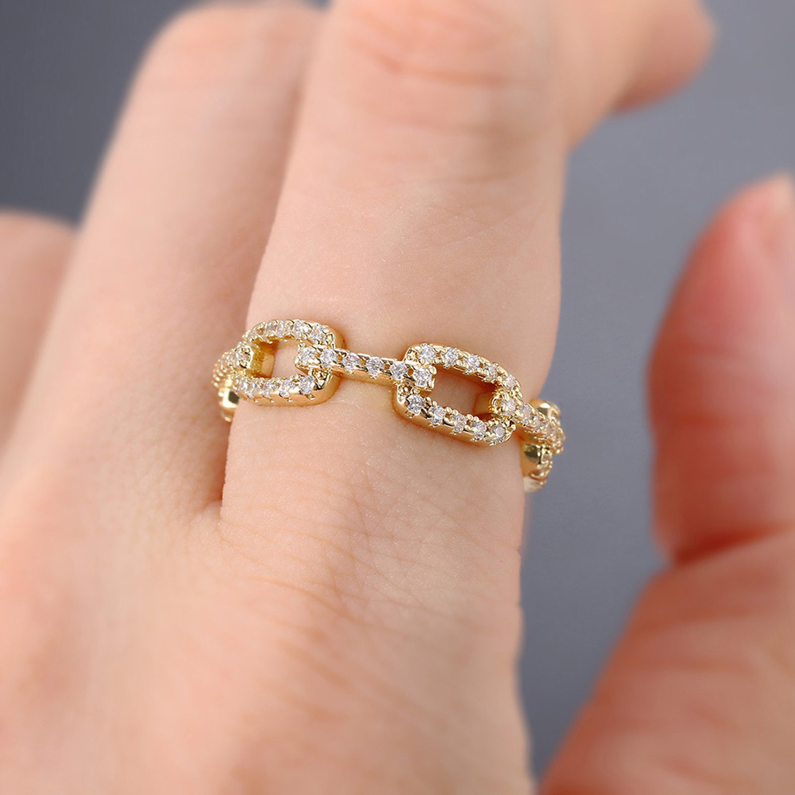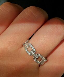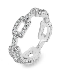 Psiroy Wedding Band for Women Twisted Link Chain Cubic Zirconia Eternity Stackable 5mm Band Ring Statement 18K Gold Plated Jewelry