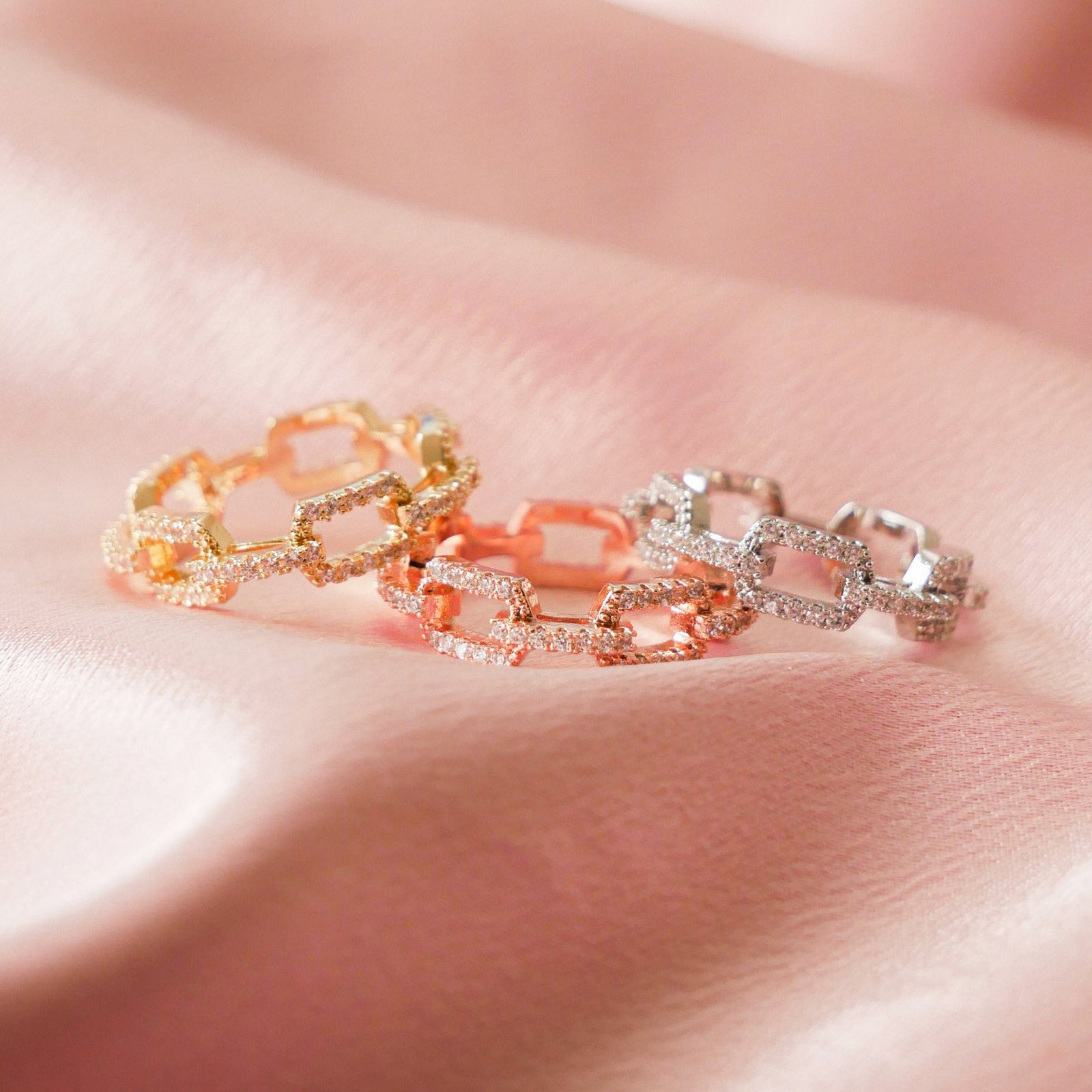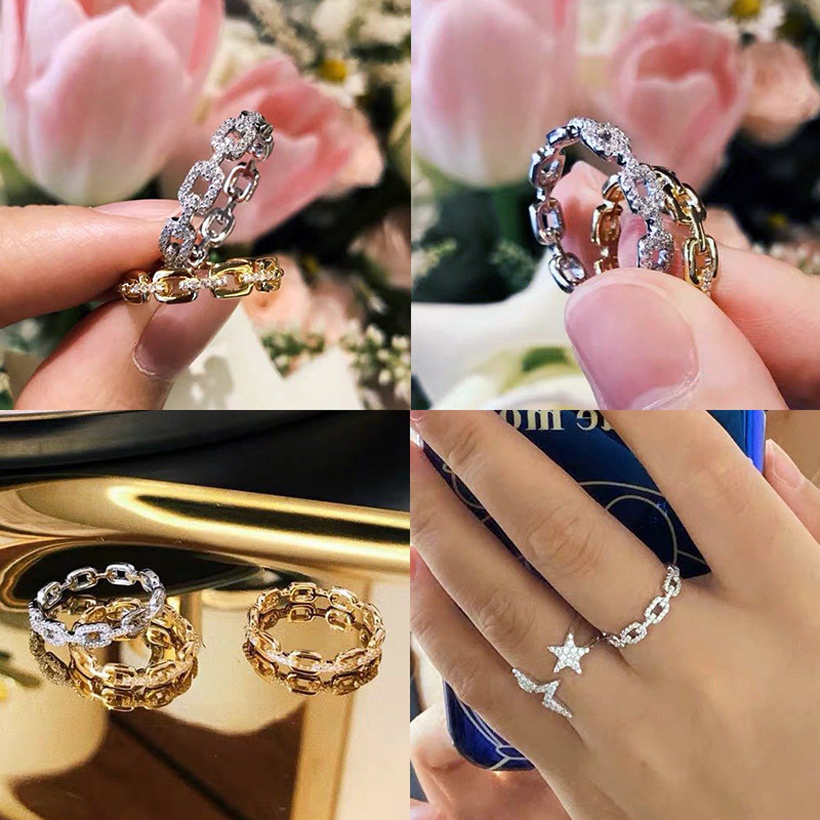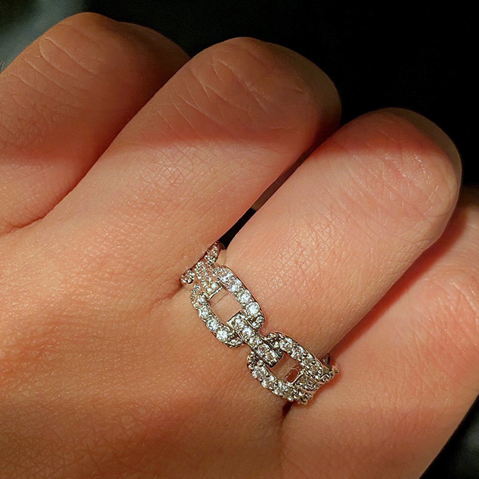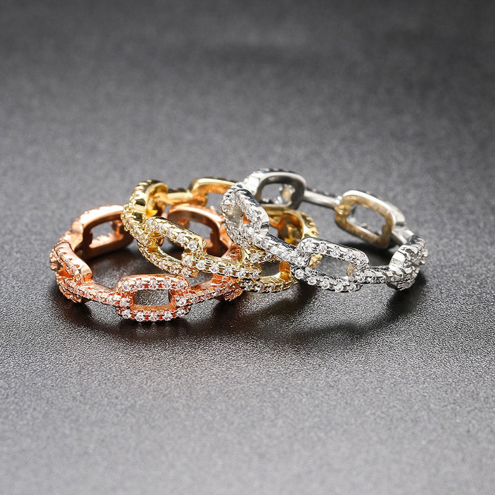 Psiroy Wedding Band for Women Twisted Link Chain Cubic Zirconia Eternity Stackable 5mm Band Ring Statement 18K Gold Plated Jewelry