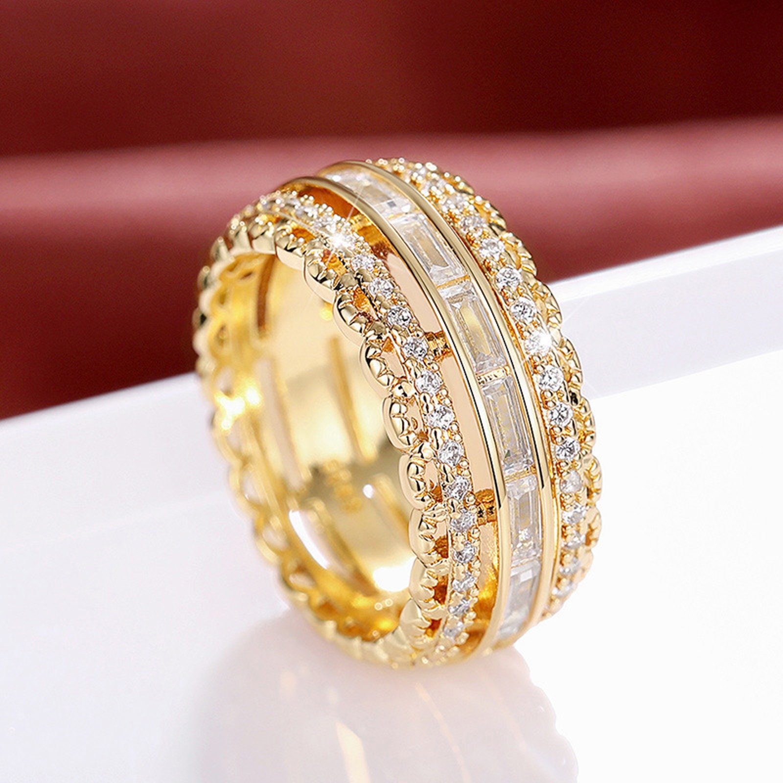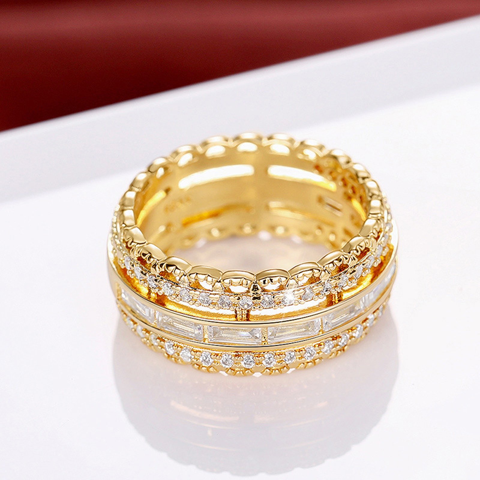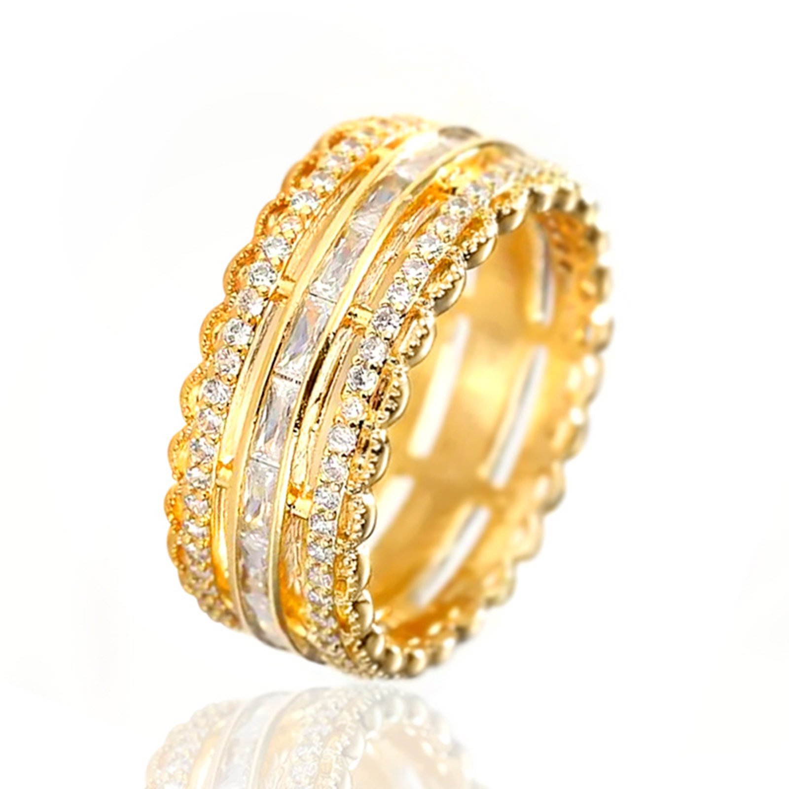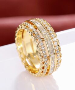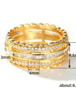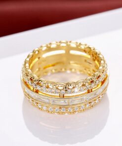 Psiroy Wide Band Rings for Women, Yellow Gold Plated Cubic Zirconia 9.5mm Statement Anniversary Ring Fashion Jewelry Mother’s Day Gift