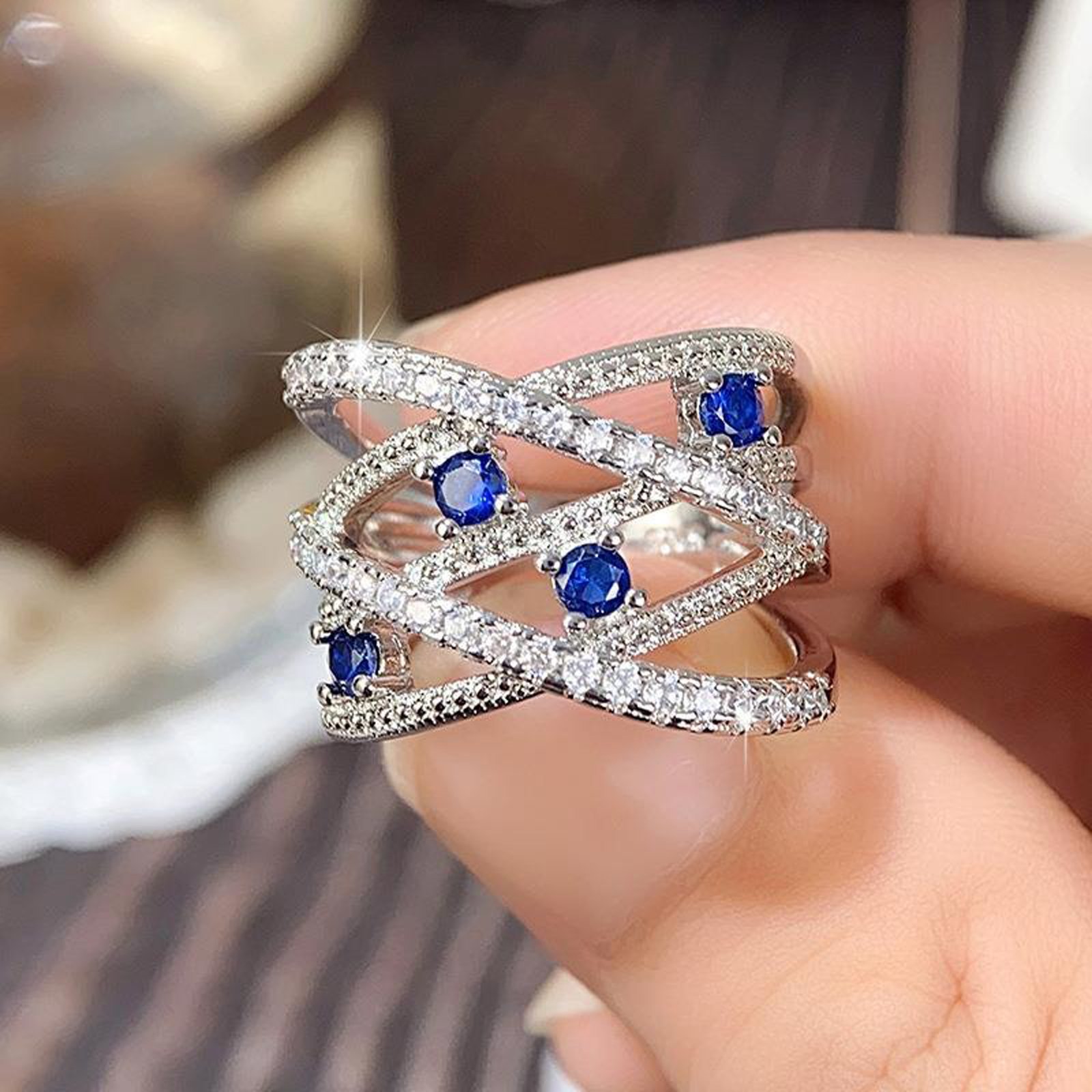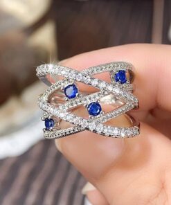 Psiroy Women’s 925 Sterling Silver Plated Created Blue Sapphire Band Ring for Wedding Engagement Promise Anniversary Party Daily Wear