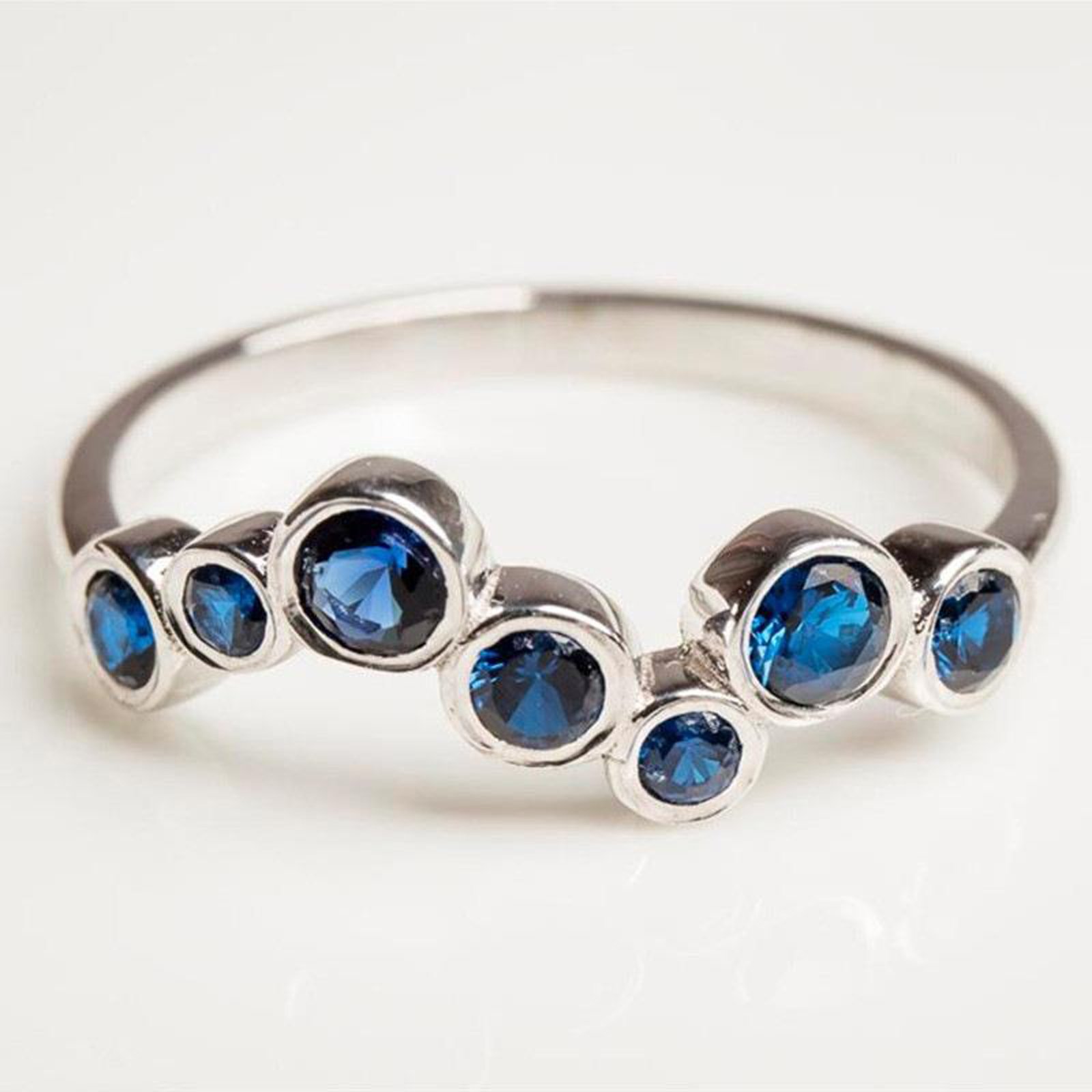 Psiroy Women’s 925 Sterling Silver Plated Created Blue Sapphire Stackable Band Ring for Wedding Engagement Promise Anniversary Party Daily Wear