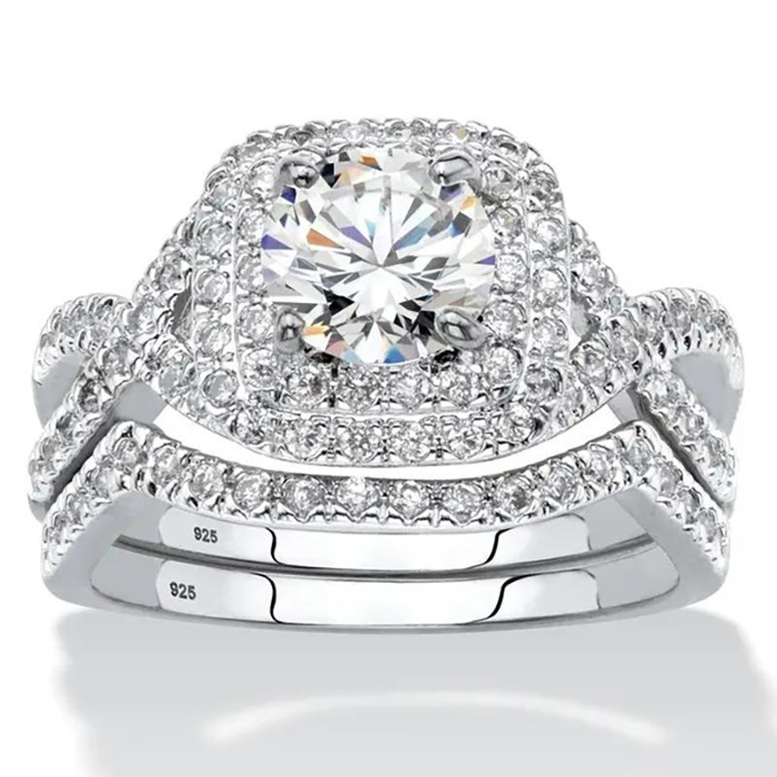 Psiroy Women’s 925 Sterling Silver Plated Cubic Zirconia CZ Infinity Stackable Wedding Band Bridal Ring Sets for Wedding Engagement Promise Anniversary Party