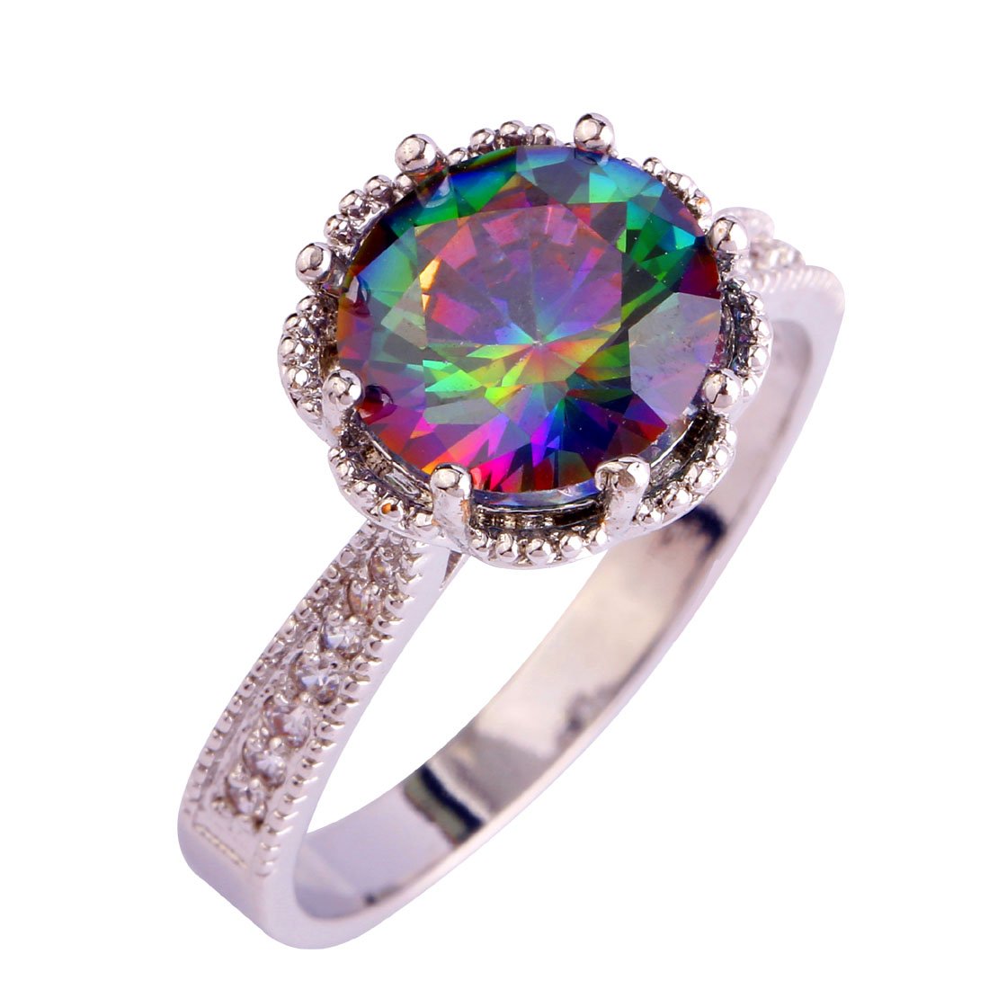 Women’s 925 Sterling Silver Created Rainbow Topaz Filled Soliatre Engagement Ring