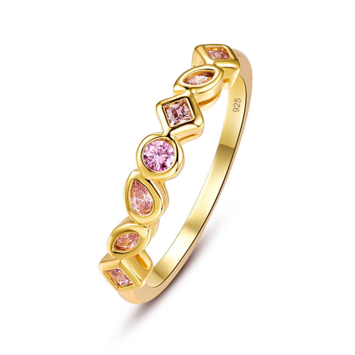 Yellow Gold Plated Created Pink Topaz Half Eternity Band Stacking Ring for Women